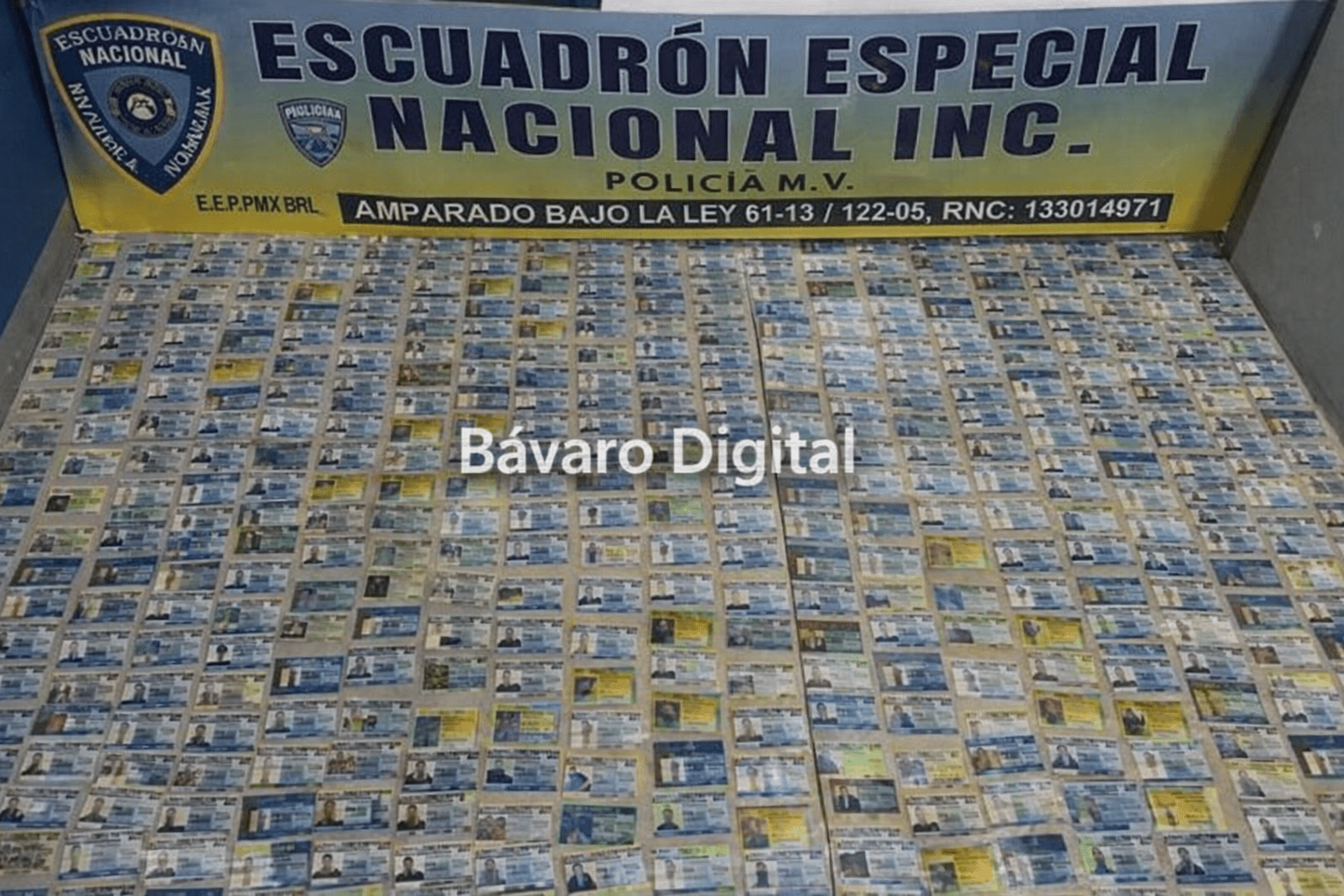 Durante la intervención, las autoridades ocuparon más de 500 carnés falsos que simulaban pertenecer a instituciones policiales, militares y otras entidades, además de gorras, uniformes, insignias y sellos con rangos fraudulentos, incluyendo distintivos de generales.